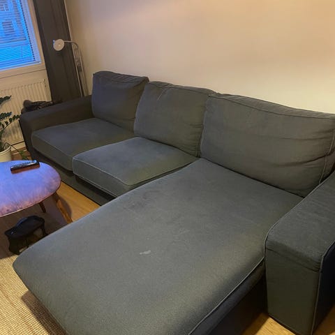 Myydään harmaa kulmasohva divaanilla muuton takia. Sohva on mukava ja tukeva. Normaalia käytön jälkeä ja pieniä tahroja (näkyy kuvissa). Divaani oikealla puolella.