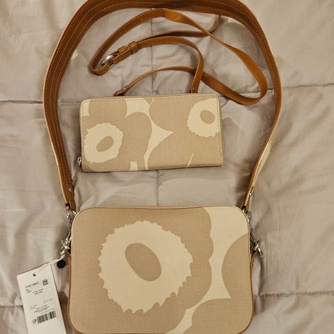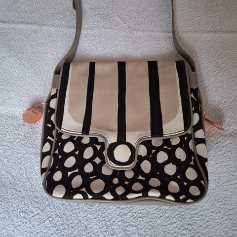 Virva Launon Marimekolle suunnittelema iltalaukku, kunto erinomainen. Harvinaisuus.