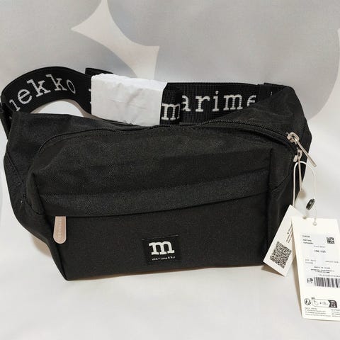 Marimekko musta Fikka-laukku on valmistettu kierrätetystä polyesteristä. Kunto uusi. Laukkua voidaan käyttää joko vyölaukkuna tai crossbodyna. Hihnan pituus pisimpään on 130 cm. Fikka-laukku suljetaan vetoketjulla ja säädettävässä hihnassa on suuri solki. Laukun etuosassa on yksi vetoketjullinen tasku ja sisällä yksi vetoketjullinen tasku.