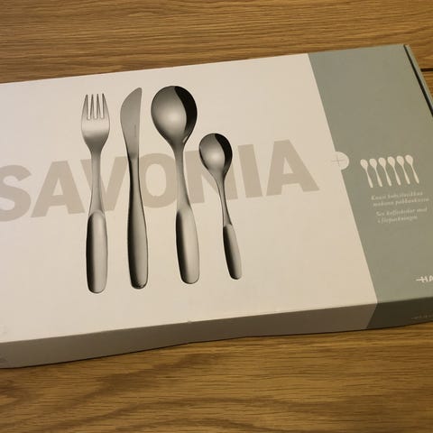Hackman Savonia aterinsetti, joka sisältää 16 osaa. Sisältää veitsiä, haaeukoita, soppalusikoita ja teelusikoita.