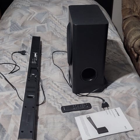 Ostin tämän aikoinaan kaupan esittelymallina. Kaukosäädin puuttuu juuri sen takia että kyseessä oli esittelymalli. Laite on muuten priima kunnossa. Tässä tietoja soundbarista: