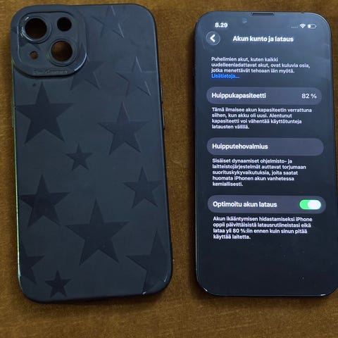 Apple iPhone 13 älypuhelin, jossa on 128 GB tallennustilaa. Puhelin on mustan värinen. Laite sisältää useita kameroita takana ja on varustettu 5G-yhteydellä.