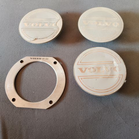 Volvo keskikupit, 4 kappaletta. Metalliset, kromin väriset, sopivat useisiin Volvo-malleihin.