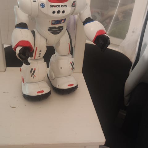 Hieno vähän käytetty robotti aiheinen lastenhuoneen kello, halkaisija noin 30cm