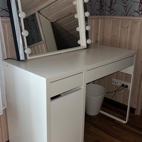 Saa kiinnitettyä seinään, kolme kiinnikettä mukaan. Valot kiinni peilissä "imukupeilla". Valoja saa himmennettyä/kirkastettua.
