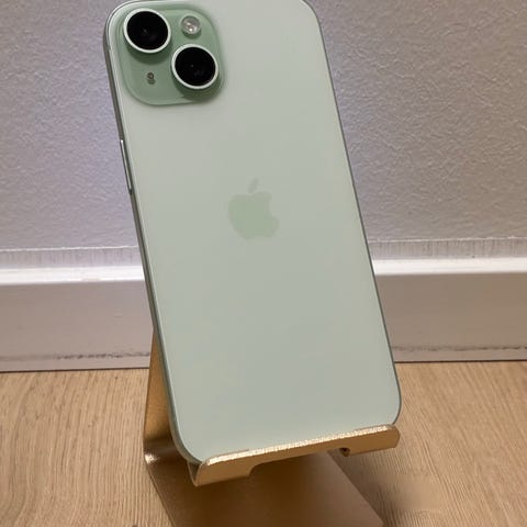 Apple iPhone 15, jossa on 128 GB tallennustila. Puhelimessa on hopeinen väri ja se on täysin käyttämätön.