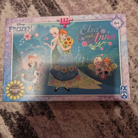 Kaksi palapeliä, Gabby ja Frozen, kerran tehty, juuri avattu. Ovat kuin uusia. Kaikki tallella.