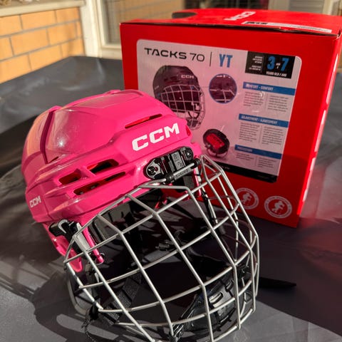 CCM Tacks 70 jääkiekko kypärä, punainen väri, koko M/Kypärä on suunniteltu jääkiekkoiluun ja sisältää kasvosuojan. Sopii käytettäväksi jääkiekon harrastamiseen ja harjoitteluun.