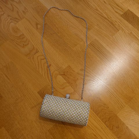 Pikkulaukku kimaltavilla kivillä ja koristeellisella hihnalla. Mitat: