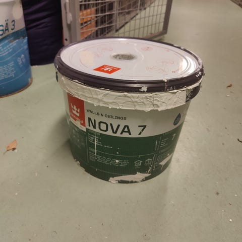 Nova 7 sisämaali harmaa, noin 2,5 litraa, hinta 20,-.