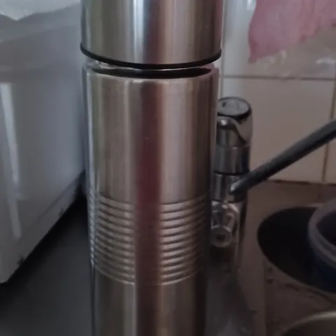 Termospullo on 0,5 litran kokoinen.