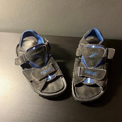 Prosec sandaalit tarrakiinnityksellä, koko 37, ehjät, mutta vanhat, kuvassa pölyiset.