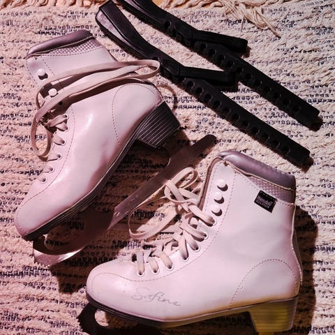 Myydään tyttöjen kaunoluistimet, yhdellä lapsella käytössä olleet. Koko 36. Uudenveroiset, mutta sisäkarvavuori varren yläreunasta hieman värjääntynyt punaiseksi toppahousuista.
