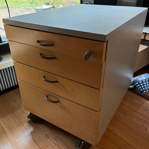 Tämä on JYSKin TAPDRUP-lipasto, jossa on kaksi ovea ja neljä vetolaatikkoa.