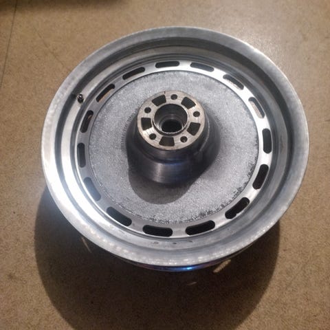Kuvien mukainen Harley-Davidson alumiini vanne, thunderstar taitaa olla mallinimi... Kromit poistettu mekaanisesti isolla kädellä, vaatii vielä hienostelua jos oikein hyvän haluaa...