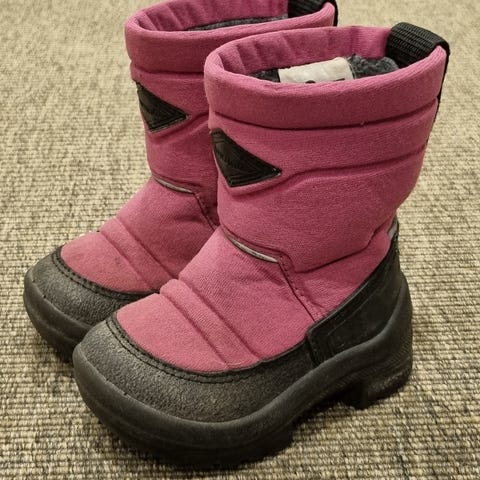 Annetaan punaiset Kuomat, koko 20. Kunto muuten erittäin hyvä, mutta mustat muoviosat alkaneet halkeilemaan. Ei siis kävelykäyttöön enää, mutta jos jollain tarvetta lämpimille kengille esim. vaunuihin, niin saa tulla ilmaiseksi hakemaan.