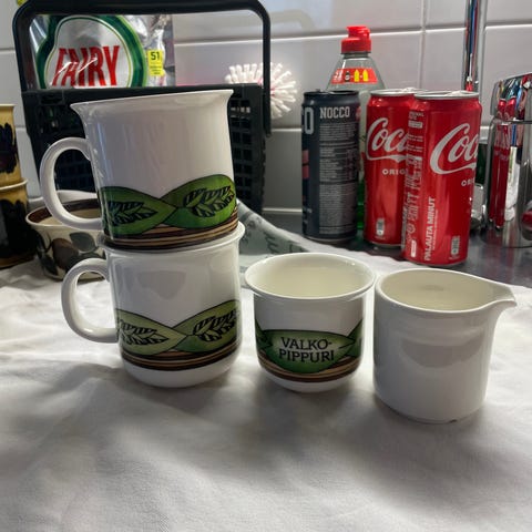 Arabia maustepurkit, keraamiset, joissa on korkkikannet. Sarjassa on viisi purkkia eri mausteille: Suola, Vanilja, Paprika, Mustapippuri ja Kaneli. Purkit ovat valkoisia sinisillä koristeilla. Koko sarja myydään yhtenä eränä.