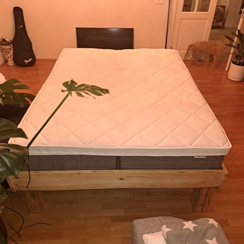 Runko ja 2 yöpöytää. Pohjarimat/levyt puuttuu.