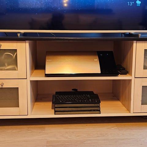Annetaan tv-taso. Mitat suuntaan antavia koska en muistanut ottaa niitä ylös.