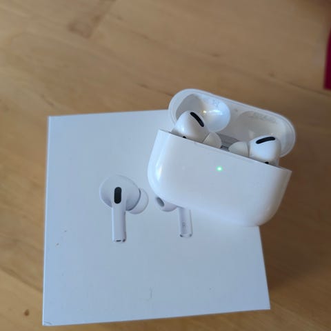 Apple AirPods pro langattomat kuulokkeet valkoisena. Kuulokkeet ovat ladattavassa kotelossa, joka toimii myös latausalustana. Sopivat langattomaan äänen kuunteluun ja handsfree-puheluihin.