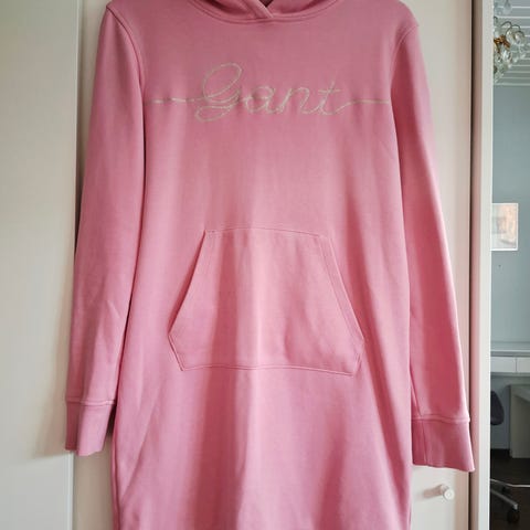 Harmaa collegemekko / hupparimekko. Koko M. Kai-kai 52 cm (+joustaa vähän) olka-helma 95 cm.