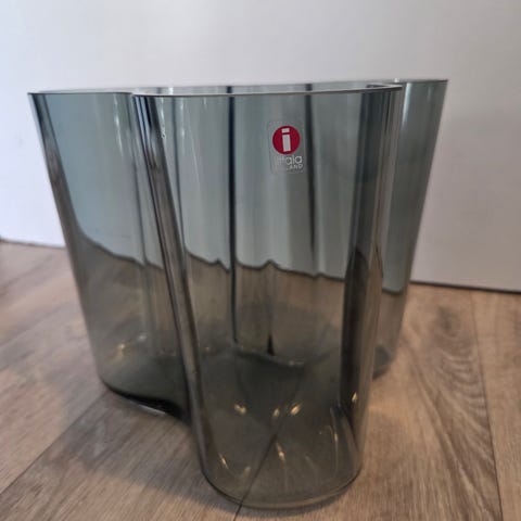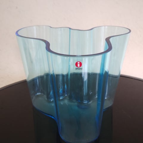 Aalto-maljakko 160 mm, vihertävä, pohjassa signeeraus. Pohjassa siirtelyn jälkiä, ilmakupla lasimassassa. Nouto Kuopiosta keskustasta.