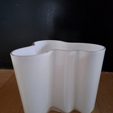 Aalto-maljakko 95 mm, valkoinen. Pohjassa siirtelyn jälkiä, on signeeraus. Nouto Kuopiosta keskustasta.