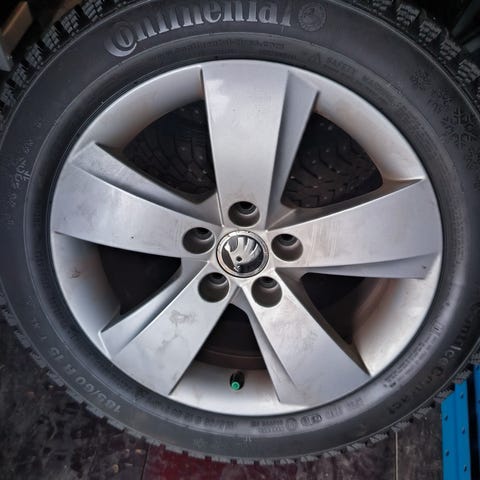 Skoda Suberbin alkuperäiset 17" vanteet Nokian kitka renkailla. Urasyvyys n.4mm