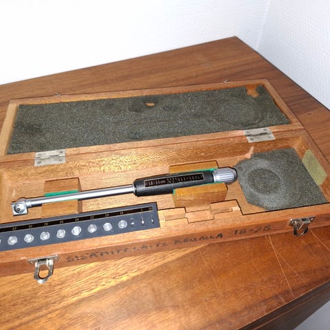 - Lukema 0,01 mm, tarkkuus ±2 + L/75 µm L=mm valmistajan mukaan