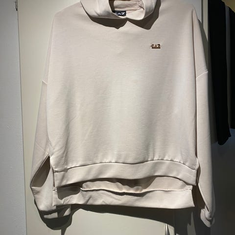 Armani EA7 verkkarit beige värissä, koko L. Vaatteen materiaalista en osaa sanoa mitä on, mutta ihanan pehmeän tuntuista ja hyvin laskeutuva kangas.