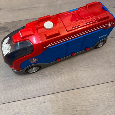 Ryhmä Hau tehtäväbussi tai hauvaunu lelu sisältää pelastusajoneuvon ja kolme hahmoa pienissä ajoneuvoissa.. Sisältää robokoira sekä mahtipentu kaksoset Ella ja Tapu , mighty pups . Kaksosten ajokit saa kiinni toisiinsa. Autossa toimivat äänet ja napit toimivat, napista aukeavat luukut.