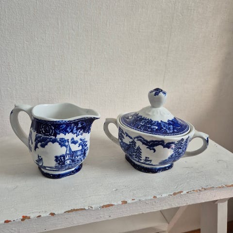 Arabia Sininen maisema sokerikko ja kermakko
