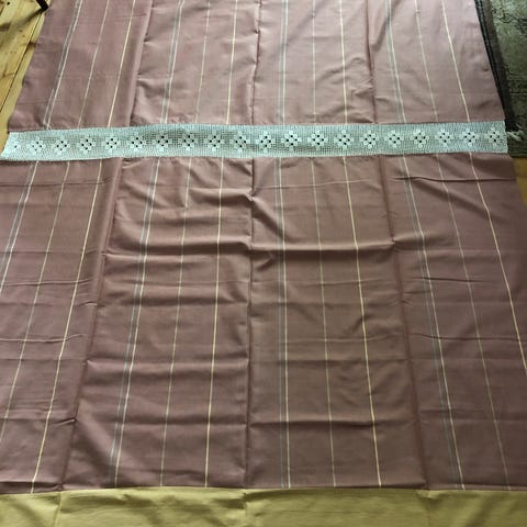 Pöytäliina, koko 130x140cm väri vihertävän ruskea h.60e sekä sängynpeitot väri musta 180x210cm h. 60e kpl