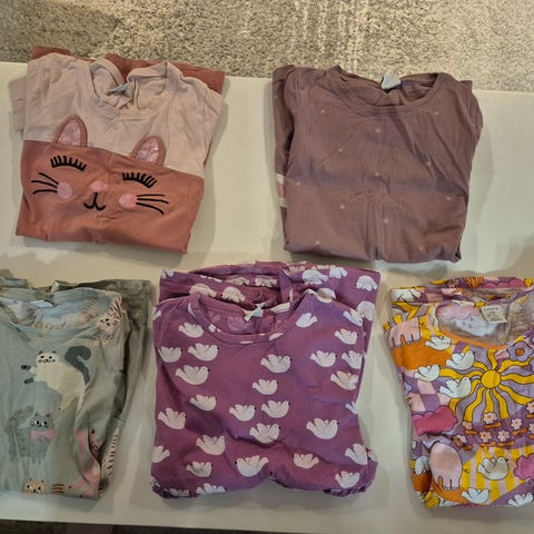 Lindexin vaatepaketti koossa 122cm sisältäen kuusi ohutta pitkähihaista paitaa. Hyvässä kunnossa yhden lapsen käytöstä.