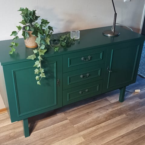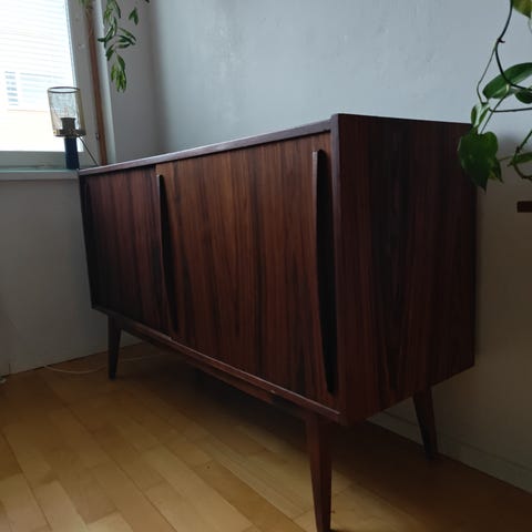 Hyväkuntoinen ja ehjä 60- luvun vintage Teak lipasto / senkki peilillä.