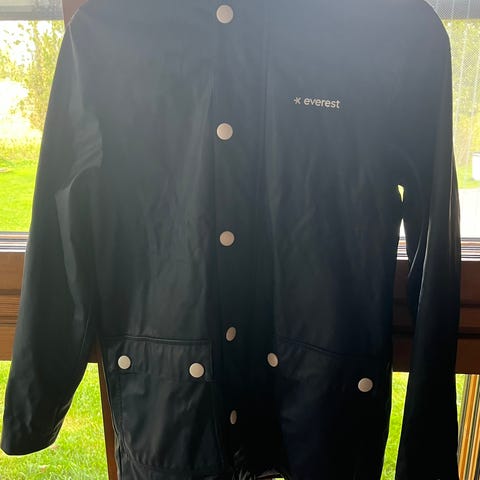 Everest Sadevaatteet ruskeassa värissä, valmistettu fleecemateriaalista. Naisten vaate, koko 34. Soveltuu ulkoiluun ja sateen sattuessa käytettäväksi.