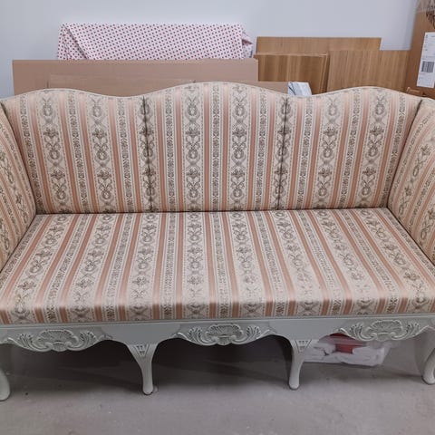 Myydään hyväkuntoinen (asunnossa pidetty) kokopuinen talonpoikaissohva. Mitat ovat leveys 180 cm, istuinsyvyys 58 cm, makuusyvyys sohva avattuna 105 cm. Kuvan tekstiilit eivät sisälly kauppaan.
