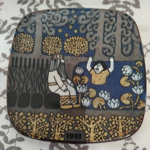 Arabia seinälautanen 1990 . Lautanen on valmistettu posliinista ja siinä on taiteilijan signeeraus. Sopii keräilyyn ja koristekäyttöön.