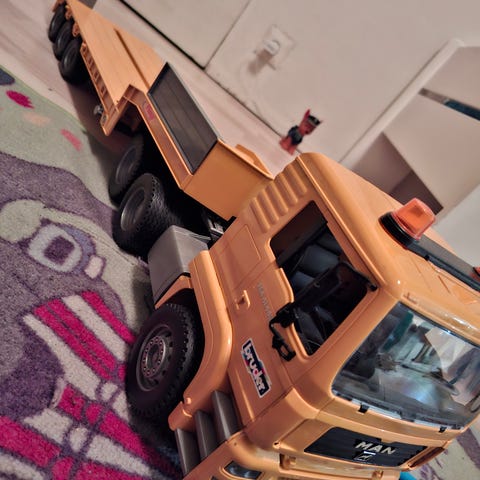 Myydään Bruderin lavettirekka Scania ja puskutraktori Caterpillar. Lavetin ajosillat puuttuu, muuten kunto hyvä.