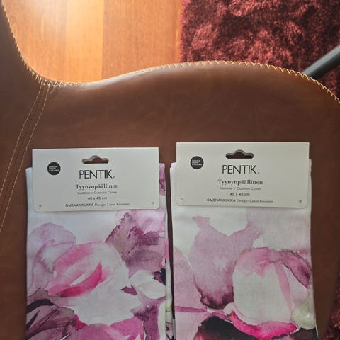 Myydään Pentikin pioni-aiheiset koristetyynynpäälliset. Kunto hyvä, vihertävän sävyisessä muutama kulunut kohta, mutta sekin yleisilmeeltään siisti. Hinta kaikille kolmelle. Lemmikkitalous.