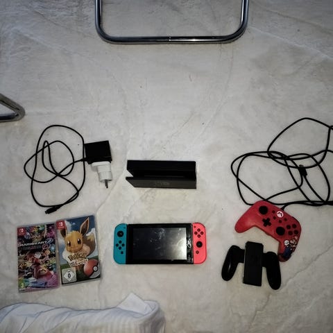 Myydään hyväkuntoinen Nintendo Switch -pelikonsoli lataustelakan kanssa.