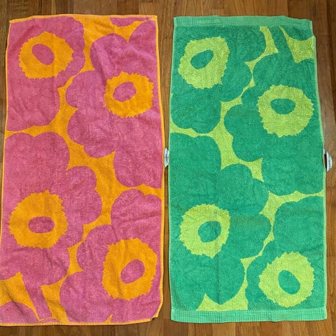 150x70 ja 70x50 tummansiniset vähän käytetyt Marimekon Unikko pyyhkeet