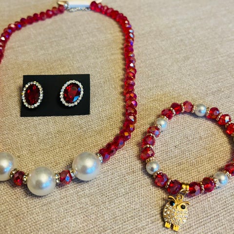 Koralli-käsikoru ja kaulakoru huivin tyylisellä ketjulla. Nikkelivapaa.