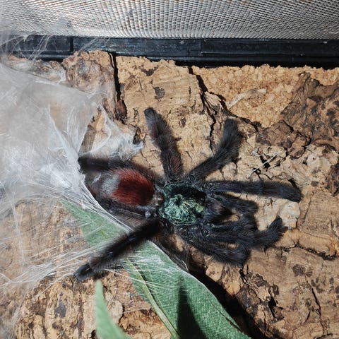 Nuori naaras läppä löytyi edellisen moltin tutkinnassa.terraariota en myy kuljetus boksin saa 20€ lisähintaan. Maksu mobilebay tai käteinen tasa raha vain nouto sillä hämähäkit ovat melko hauraita.lajia suositellaan youtubessa aloittelijoille koska ovat hanakoita syömään.