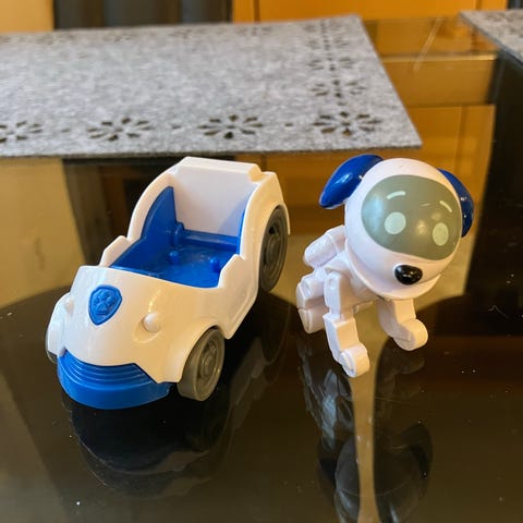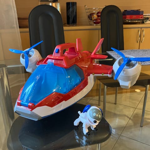 Setti sisältää suuren puna-harmaa-sinisen lentokoneen ja valkoisen Rikulle kuuluvan robottikoirahahmon.
