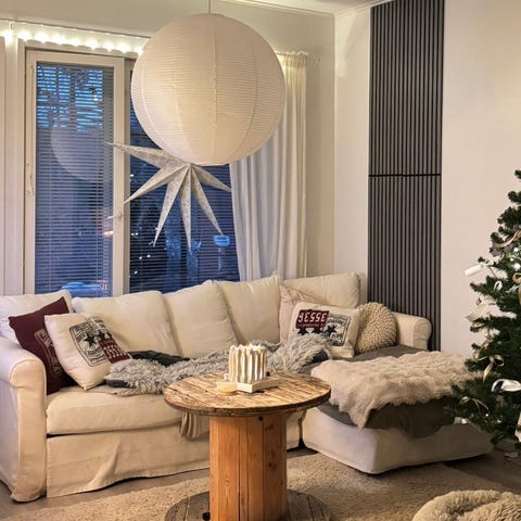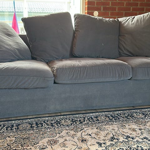 Hyväkuntoinen sohva, pieniä tahroja, mutta päälliset irroitettavissa pesuun. Taloudessa koiria, joten karvoja varmasti löytyy. Ostettu noin kolme vuotta sitten.