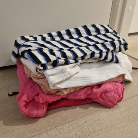 Annetaan kaksi urheilupaitaa, toisessa kokomerkintä XXS ja toisessa M, mielestäni molemmat menee noin koossa S-M.