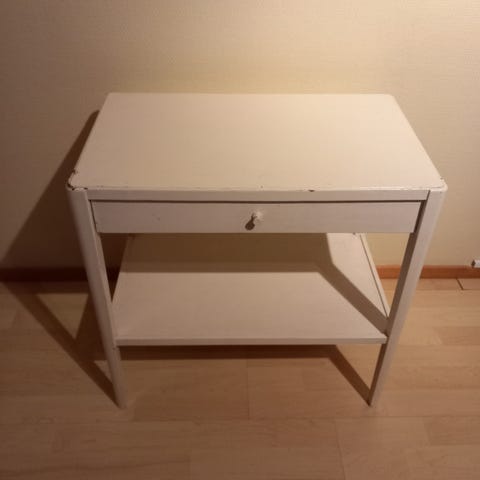 Pöytä vetolaatikolla,kansi vaatii siistimistä,pöytälevy on puuta,50- luvun lopulta.