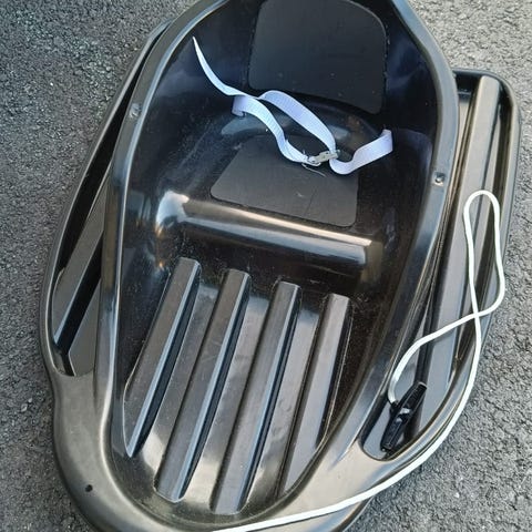 Vihreä Stiga Cruiser pulkka istuinosalla ja nauhalla.