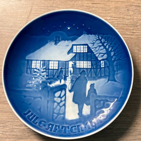 Bing & Grøndahl Joulutalvi 1975 seinälautanen sininen posliini